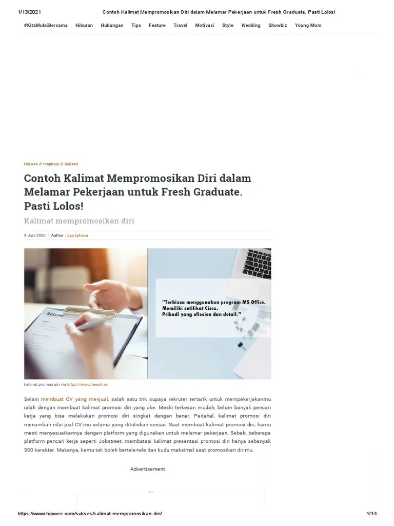 Sebagai jobseeker, saya ingin berbagi bagaimana cara membuat kalimat yang tepat untuk mempromosikan diri saat melamar pekerjan melalui namun, sebelum memulai mempromosikan diri di jobstreet, ada baiknya anda membuat ringkasan resume profile diri anda yang baik. ← contoh kalimat mempromosikan diri di jobstreet fresh graduate contoh kalimat majemuk hubungan akibat maka brainly. Saya adalah orang yang mudah bersosialisasi dan senang bertemu orang baru. Biasanya di situs seperti jobstreet glint atau job like biasanya kita dituntut untuk memberikan beberapa kalimat promosi diri lamaran kerja. contoh kalimat promosi diri lamaran kerja.